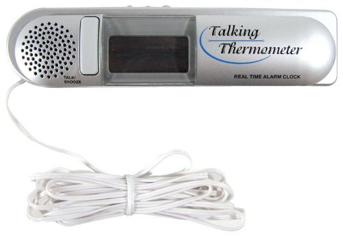 Great Little Talking Clock Thermometer. Measures 5-7/8" x 1-3/8" x 3/4" Thick is Silvertone Plastic. Reviews